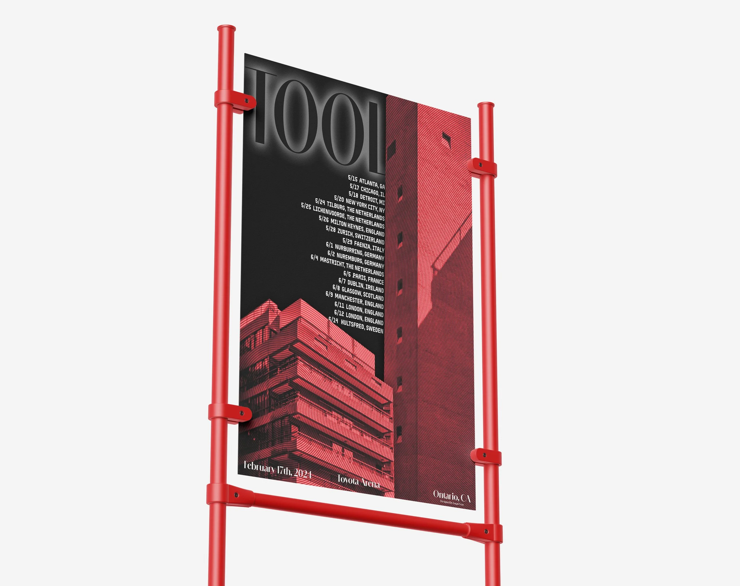 Utilizing stark typography, geometric abstraction, and raw, unrefined textures, each piece channels the weight and depth of TOOL’s music while embracing the brutalist principles With heavy letter–forms echoing the bands lyrical themes of introspection and transcendence and high-contrast, industrial textures reminiscent of concrete, This design is meant to evoke a feeling of grit and stress.