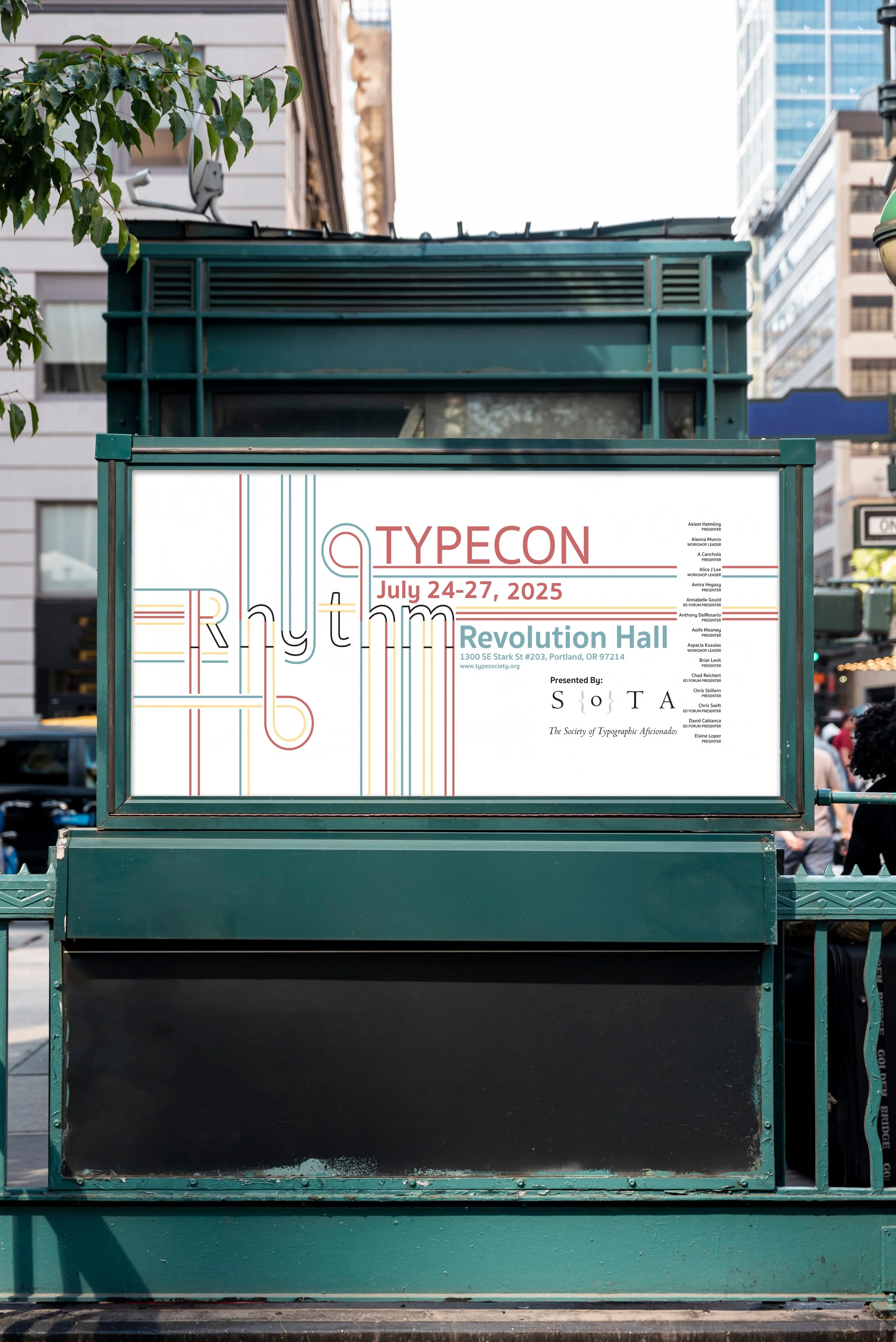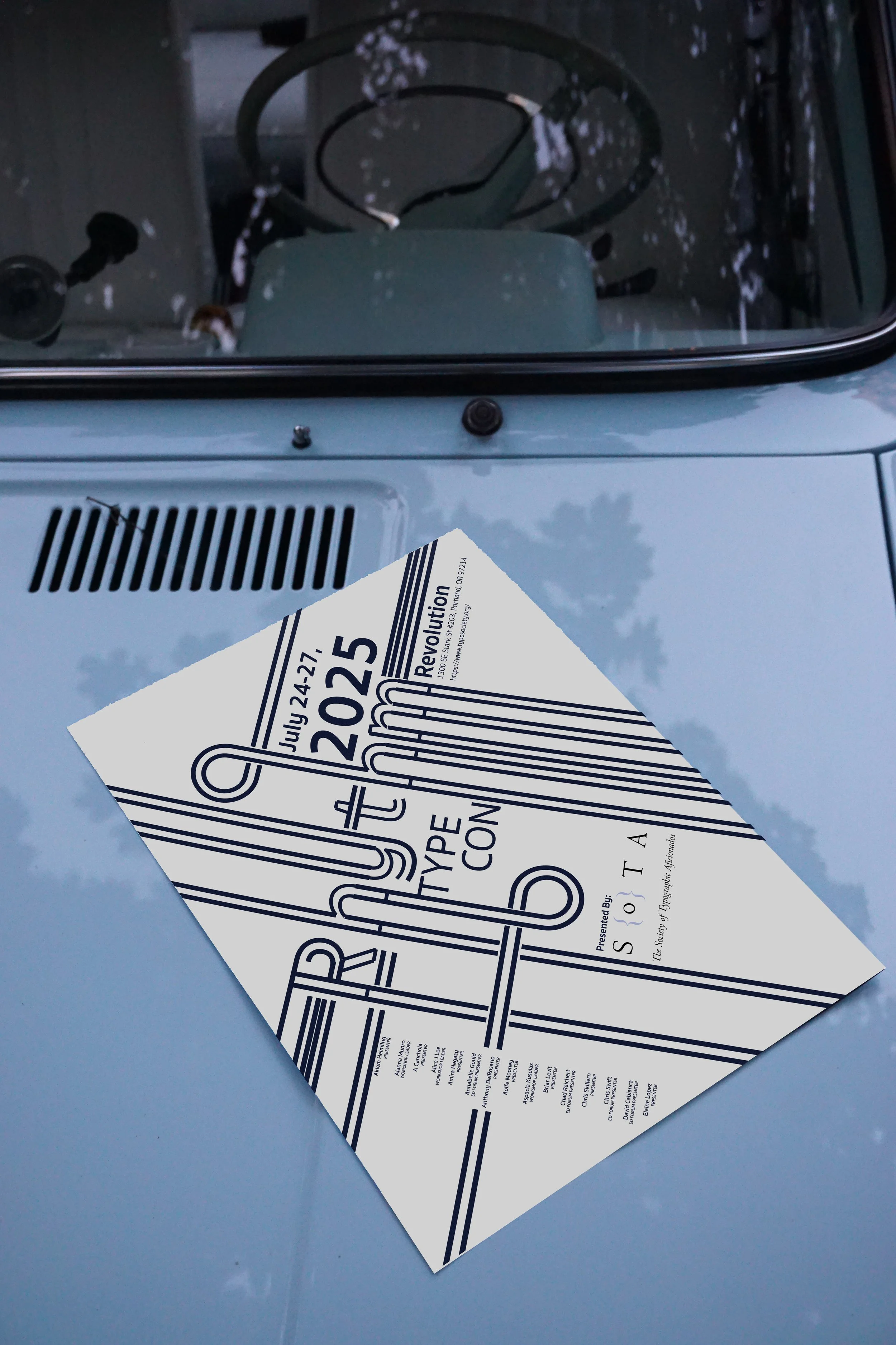 - marketing and print -Rhythm is a dynamic typographic poster designed for TypeCon, celebrating the fluidity and movement of type. Through letter forms and rhythmic patterns, the design visually echoes the musicality of typography, creating a balance between structure and flow. The poster invites viewers to explore the cadence of type.